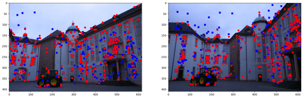 Reconstructed the scene from two images (shown above) using the SIFT matchings. The SIFT descriptors are simply computed and matched using OpenCV.