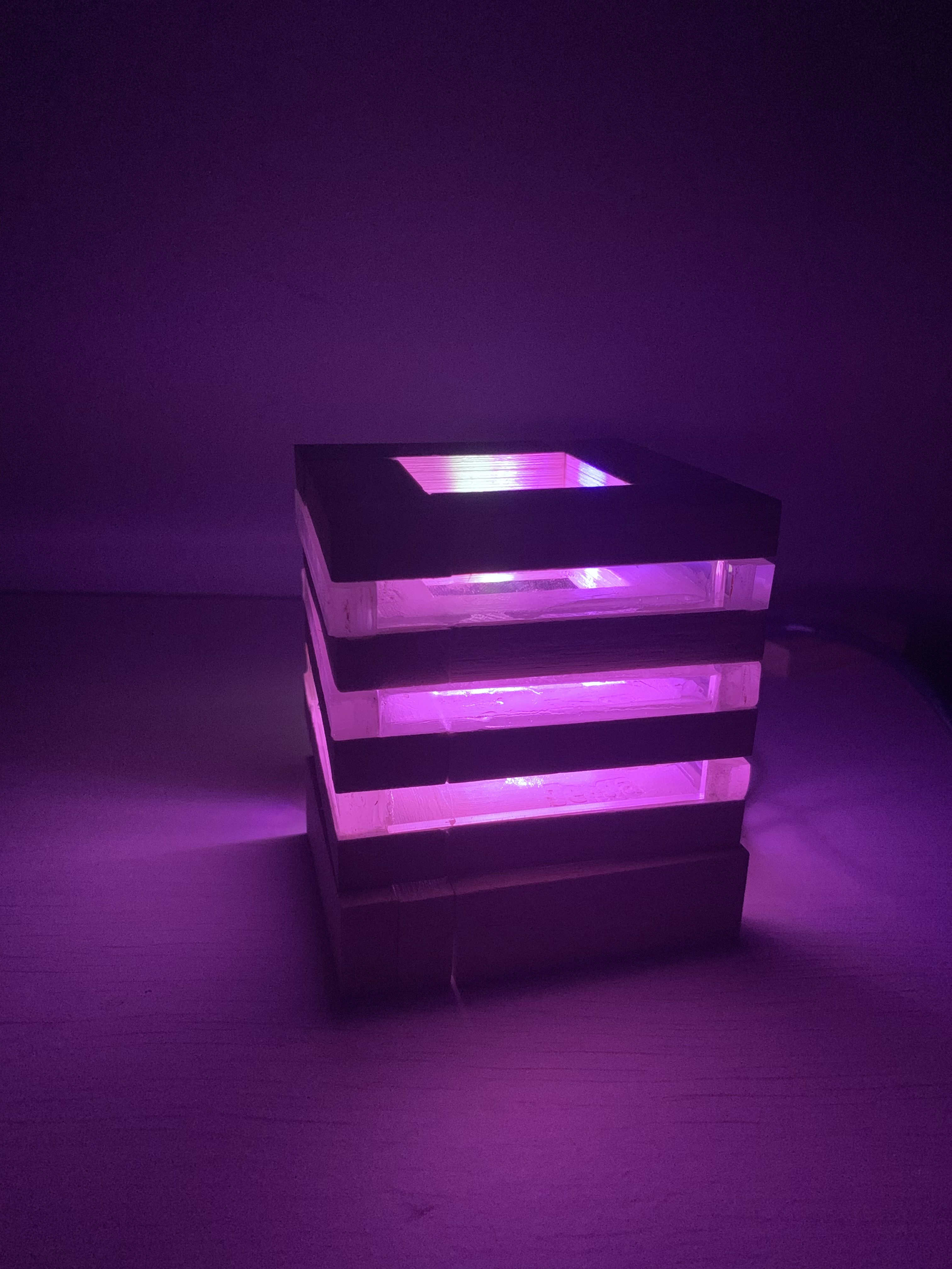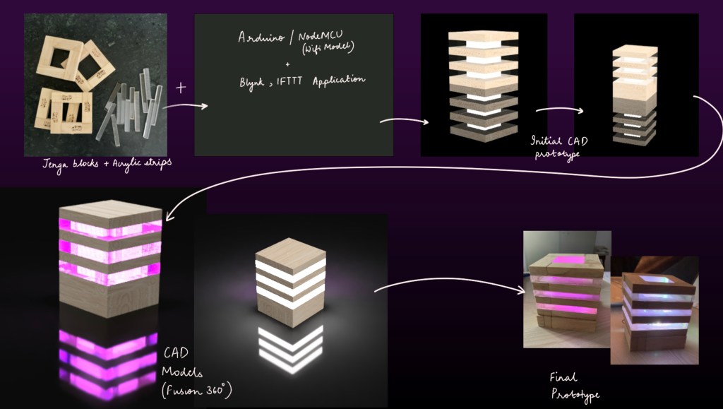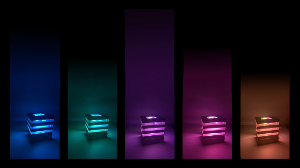 This mood lamp emits soft colours to uplift ones mood when triggered using voice commands or by using a mobile application.