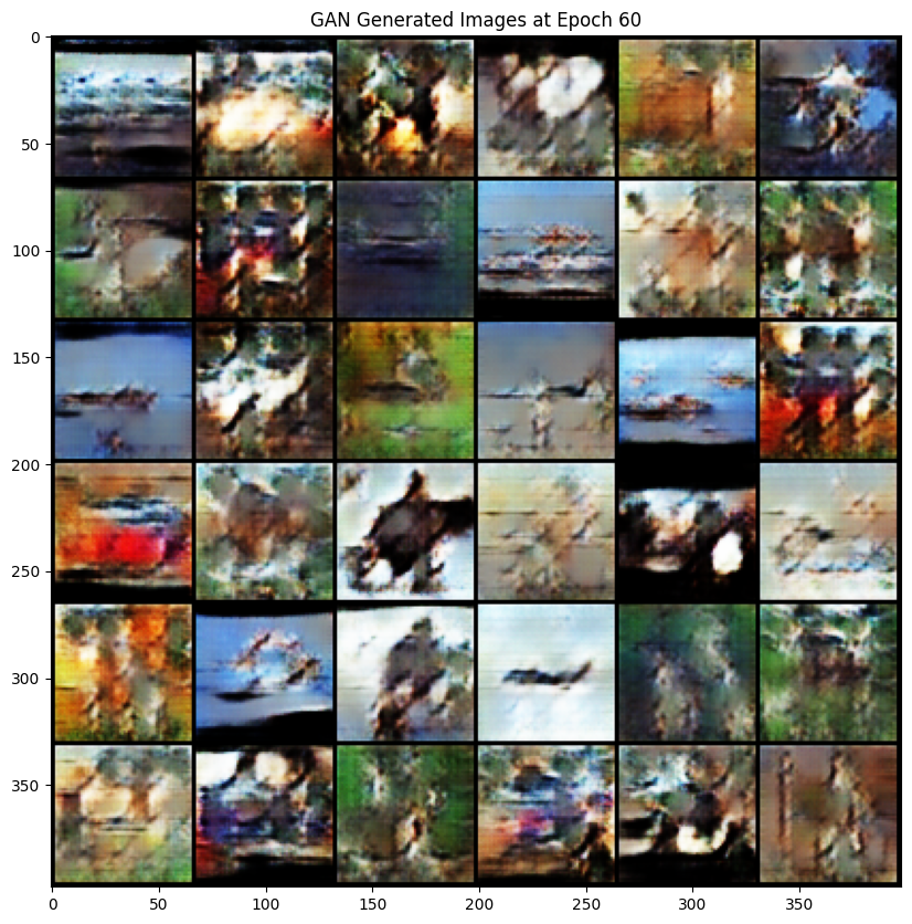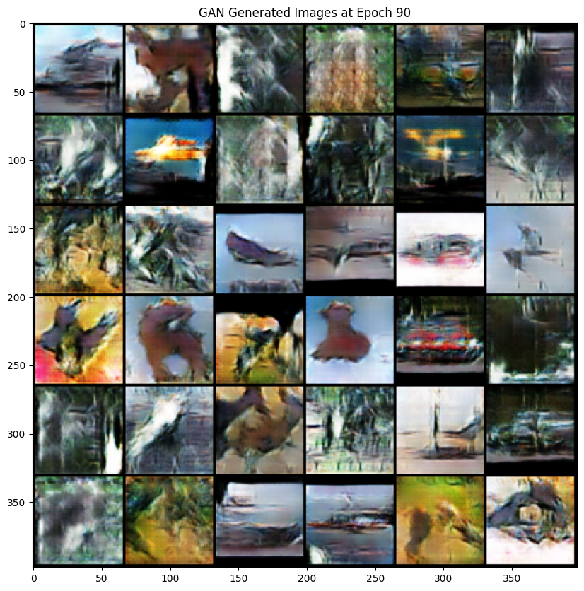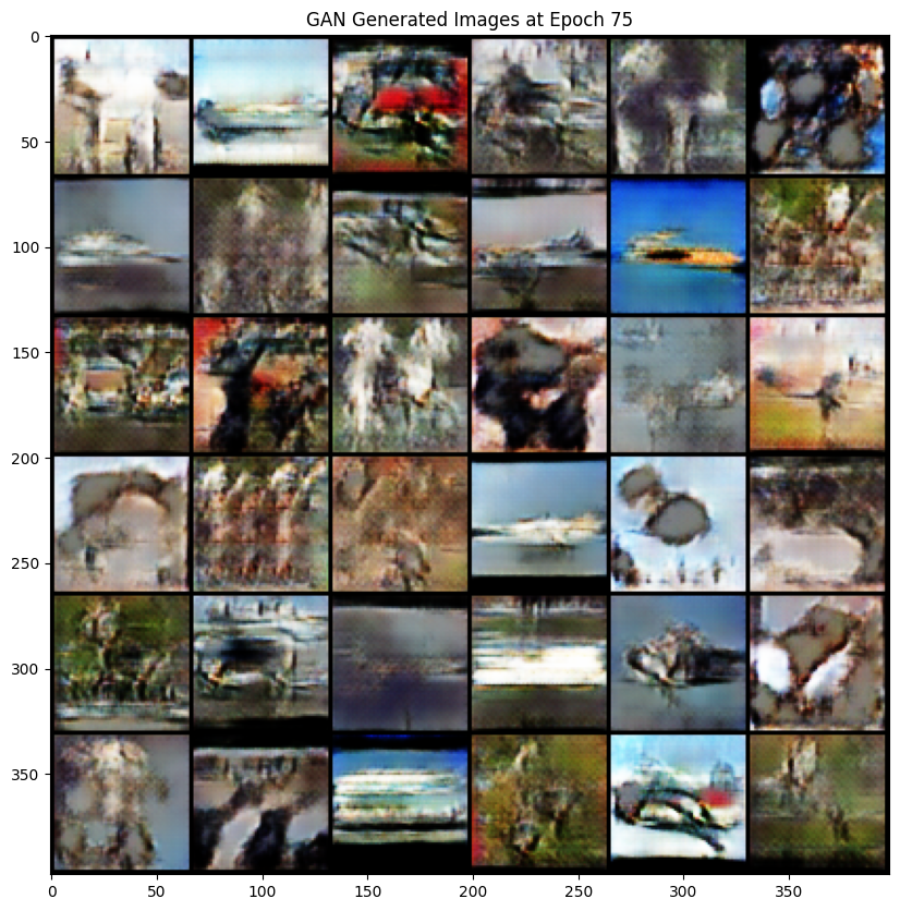 Constructed from scratch following the research paper on GAN, on the STL-10 dataset. It is a powerful unsupervised learning model that facilitates domain adaptation by mapping images from one domain to another without paired training data, showcasing impressive results generating realistic images. The objective function is a min-max game, aiming to minimize the generator’s loss while maximizing the discriminator’s loss. Implemented tricks to address potential issues such as mode collapse, including normalization, Tanh activation in the generator’s last layer, Gaussian distribution for latent code, and modified loss function.