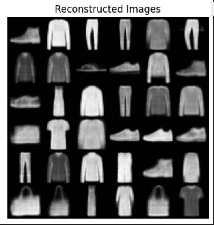 Implemented a Variational Autoencoder (VAE) on the Fashion MNIST dataset involving training a neural network architecture to learn a probabilistic mapping of input images to a latent space.